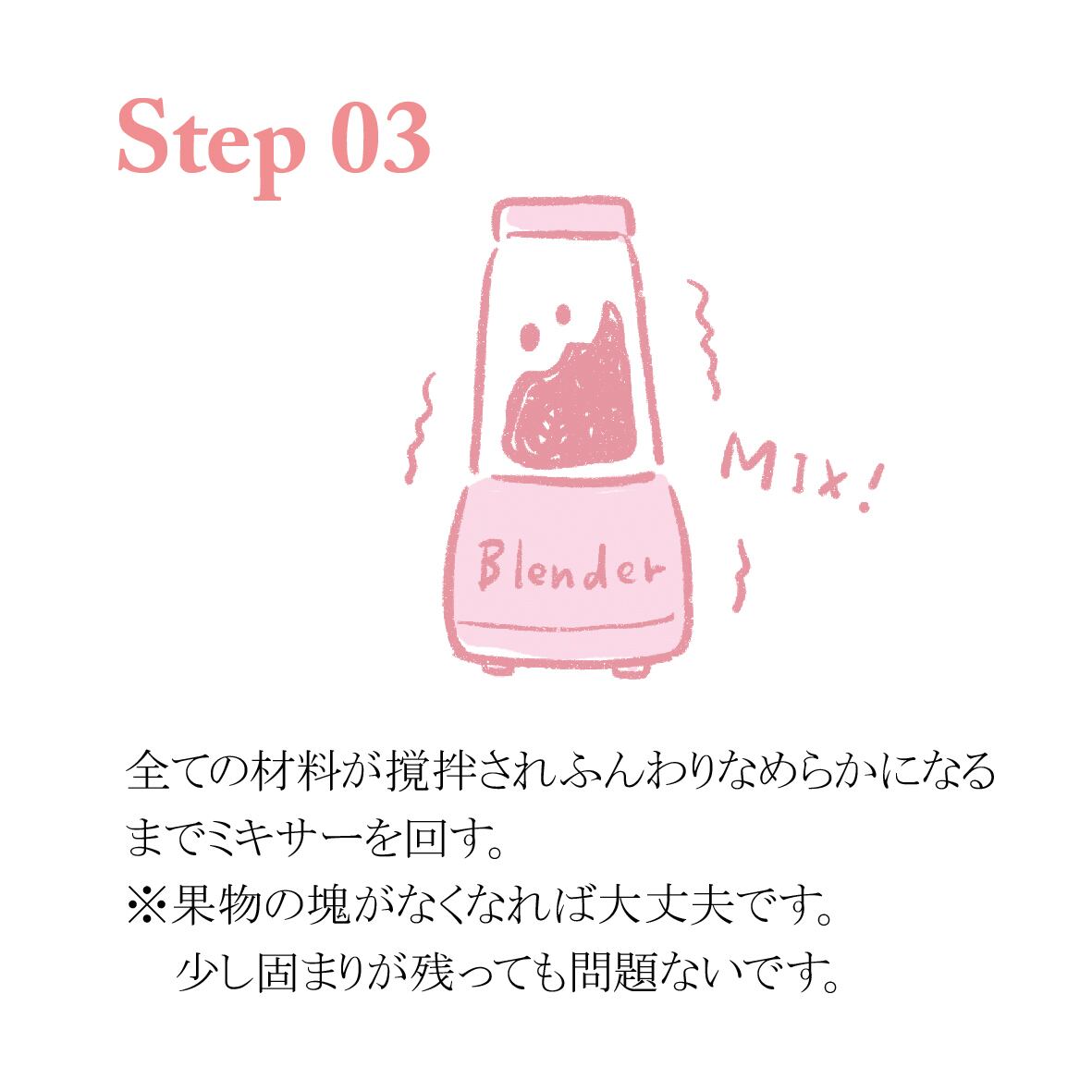 ・ミキサーが止まってしまったら、スプーンでミキサーの刃の周りをかき混ぜてから再度ミキサーを回すとスムーズです。